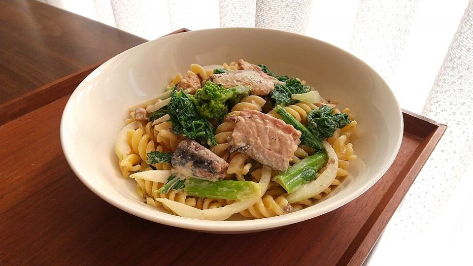サバ缶と菜の花の味噌マヨパスタ Marimorin Snapdish スナップディッシュ Id Wui48a